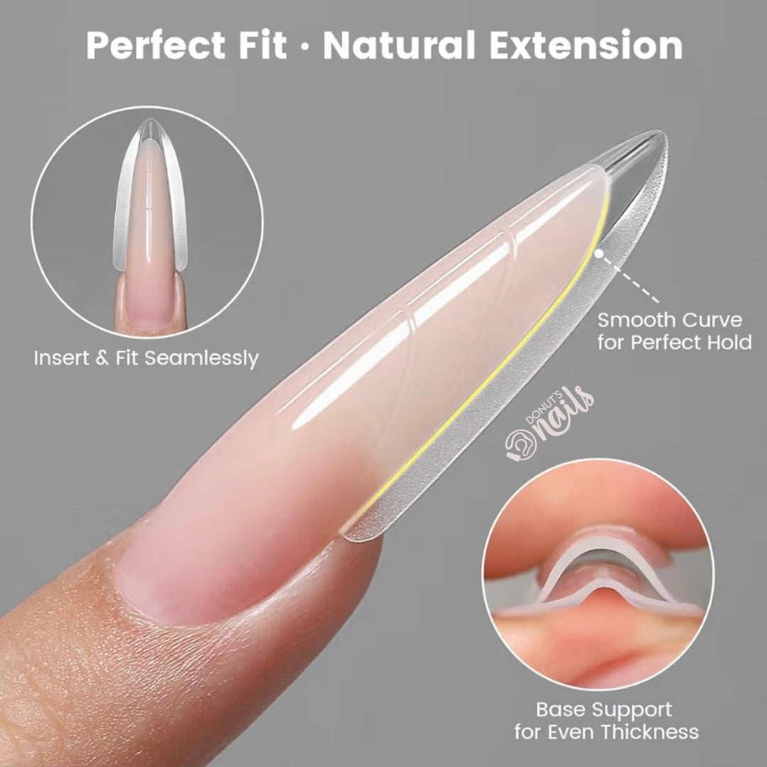 Sandwich Dual Forms are special REUSABLE quick nail extension system that uses both: top and bottom mold to create a uniform and smooth nail shape with less filling and gap-free result.