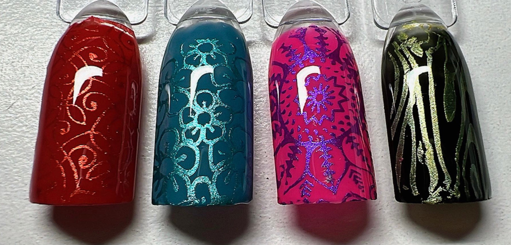 Whether you're working on light bases or dark shades, our stamping polishes ensure perfect contrast and bold definition every time.